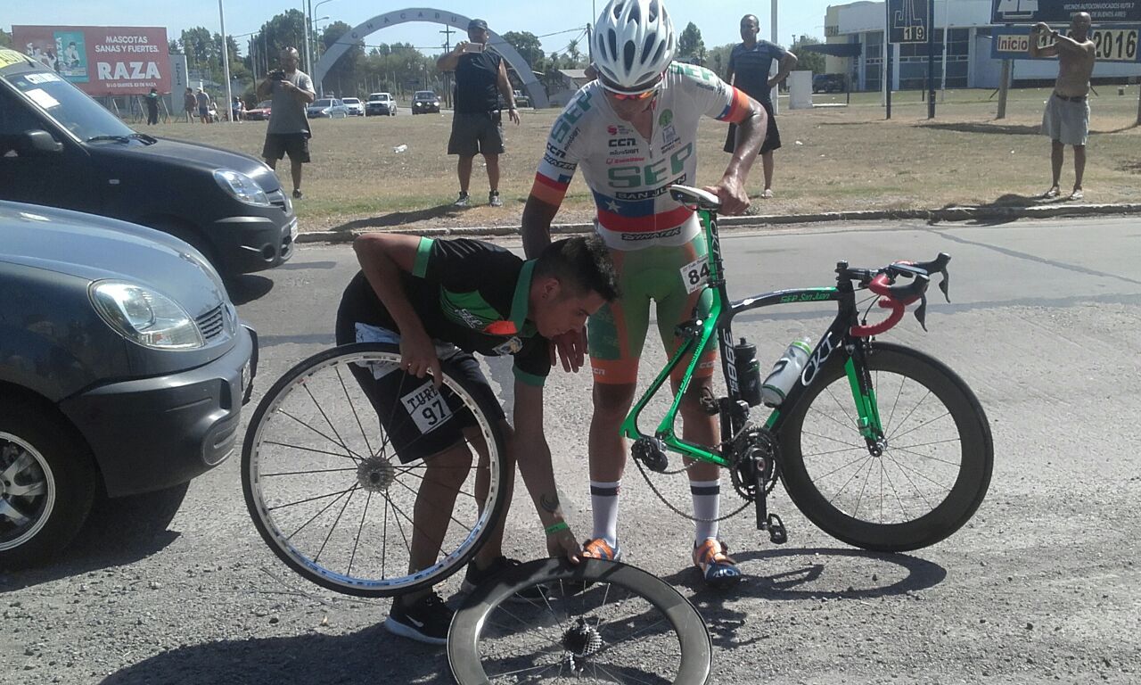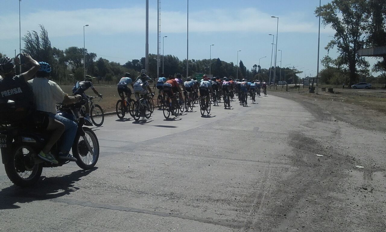 El ciclista chacabucquense Fernando Gil Maidana cumple una gran tarea, pedaleando junto al pelotón de punta.