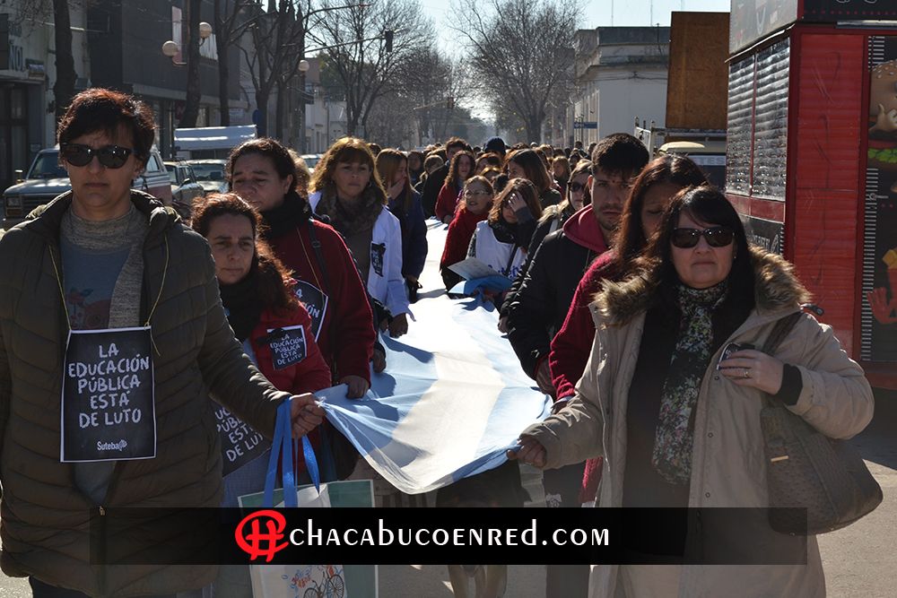 Posteriormente marcharon tomados a una bandera nacional, y llegaron hasta la Jefatura Distrital de Educación en calle Pueyrredón y Tucumán.