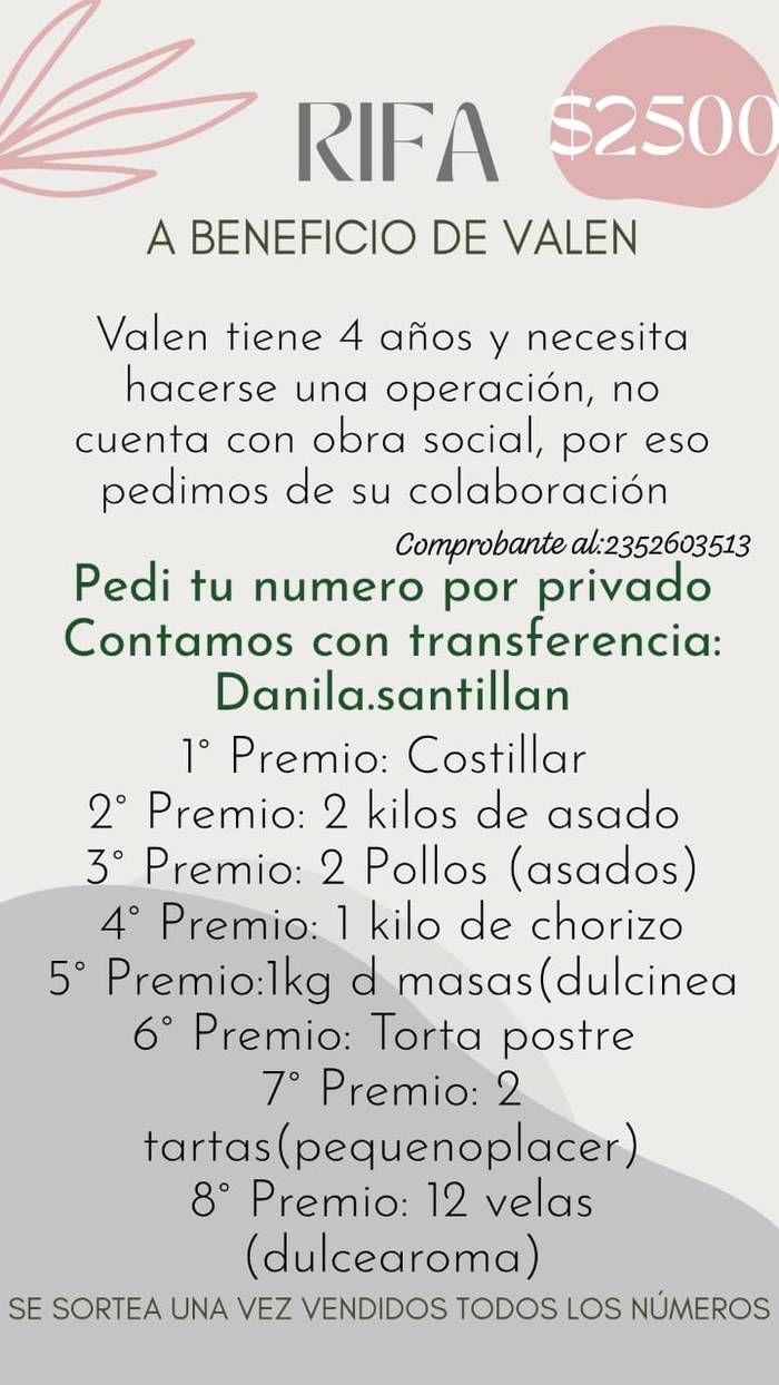 El costo de la operación asciende a 2.400.000 pesos, una suma que la familia no puede afrontar por sus propios medios. Por tal motivo, impulsaron la venta de una rifa solidaria con el objetivo de recaudar el dinero necesario para el tratamiento.