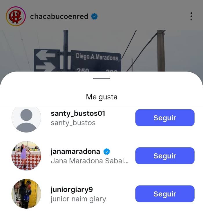 Chacabuco en Red realizó una publicación en redes sociales sobre este acontecimiento y una de las hijas del astro argentino, Jana Maradona, le dio “Me Gusta”.