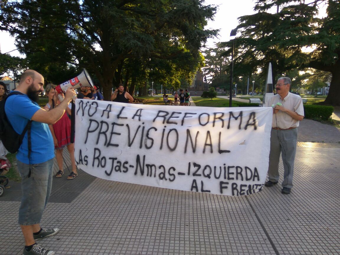 Ayer pasadas las 19 hs. se dieron cita en la Plaza San Martín dirigentes del Nuevo MAS, Las Rojas e Izquierda al Frente para marchar en contra de la Reforma Previsional impulsada por el Gobierno Nacional. Allí dialogamos con Emilio Almada dirigente de la Izquierda al Frente por el Socialismo