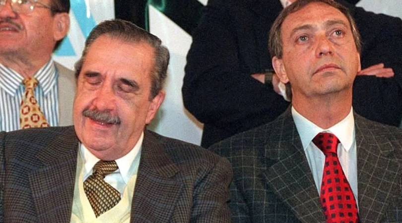 (foto: Raúl Alfonsín y Luis Brandoni en uno de los actos de la campaña electoral de la Alianza UCR-Frepaso)