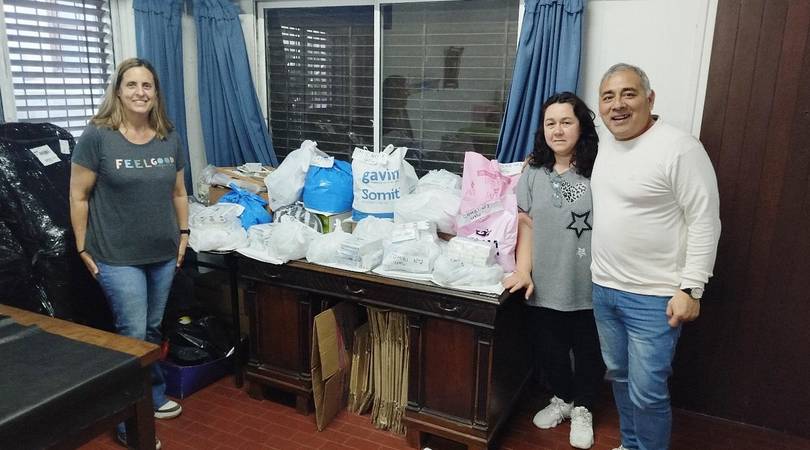 En la imagen, los feligreses María Marta, Aurelia y Fabián, que junto a Claudia y Vanesa trabajaron en la organización de la logística del viaje.