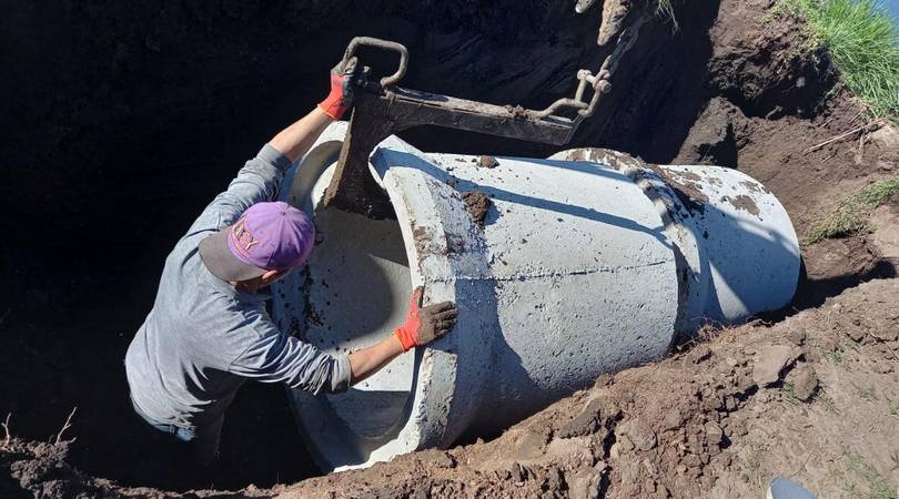 El Municipio de Chacabuco lleva adelante trabajos de reparación en dos cruces de calles sobre el canal de escurrimiento de aguas en la zona de chacras de la localidad de Cucha Cucha.