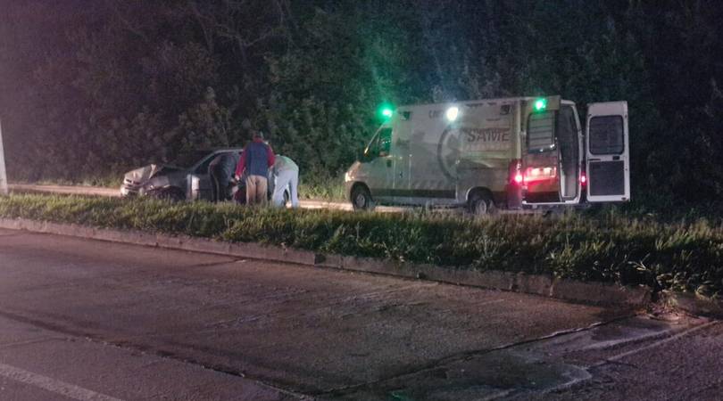 Allí por razones que se tratan de establecer, un automóvil Fiat Palacio colisionó con una columna de iluminación. Cómo consecuencia del choque, una mujer y un hombre fueron trasladados al Hospital Municipal por una ambulancia del SAME.