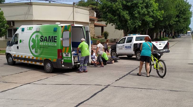 Un automóvil Ford Focus cruzó la avenida y colisionó con una mujer que circulaba en moto. No sufrió heridas de gravedad, pero debió ser trasladada al hospital. La mujer herida está embarazada.