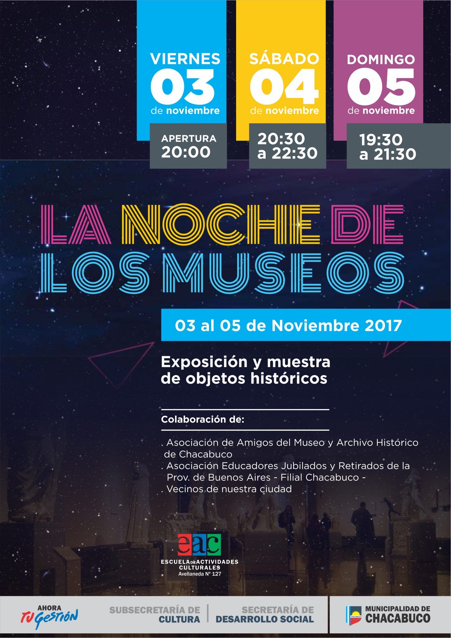 La Muestra tiene por objeto adherir a la tradicional “Noche de los Museos”, un evento internacional y nacional que este año se realiza en Argentina el sábado 4 de noviembre.