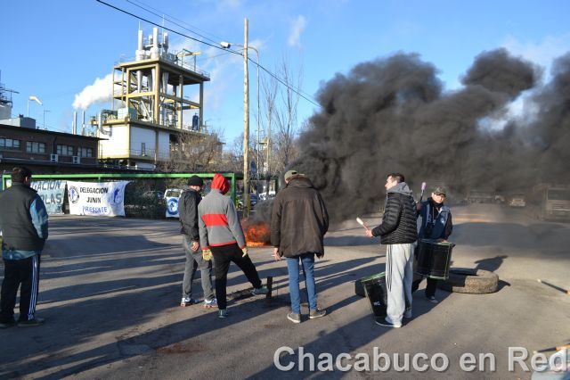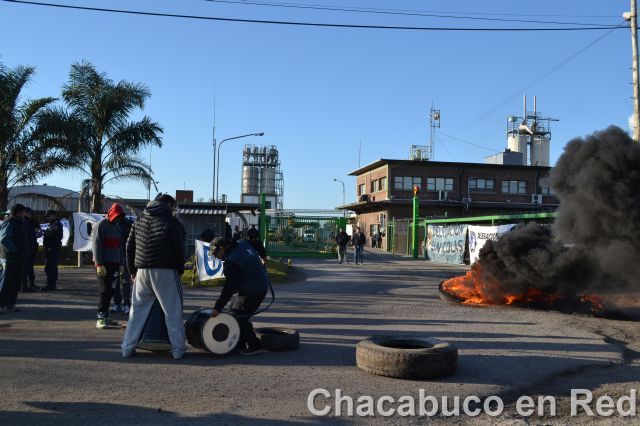 Esta mañana la puerta de la fábrica amaneció como hace un par de meses atrás: con trabajadores protestando y quema de gomas.