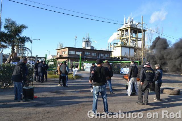 Los trabajadores pertenecen a la empresa OSE que presta servicios a la multinacional Ingredion. Por el momento el ingreso a la planta está cortado y no pueden entrar ni salir camiones.