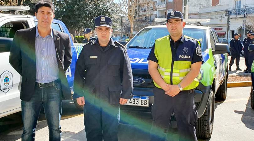 Este martes, el director General de Seguridad, Marcelo Loyola, y el Comisario, Hernán Reyes, participaron del acto de entrega de móviles policiales en la ciudad de Lobos.