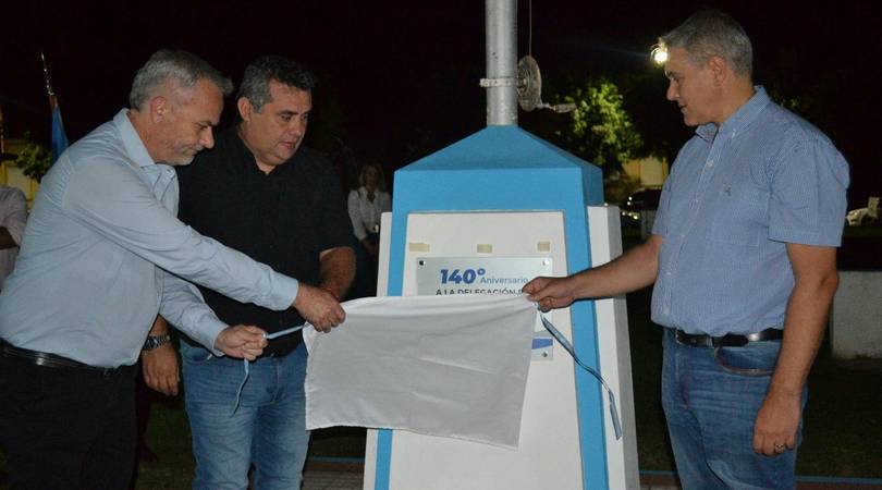 Posteriormente, el Intendente, junto al Delegado Municipal Martín Rondina y al Secretario General de la Municipalidad, descubrieron una placa conmemorativa por el aniversario y colocaron una ofrenda floral al pie del monumento al General José de San Martín.