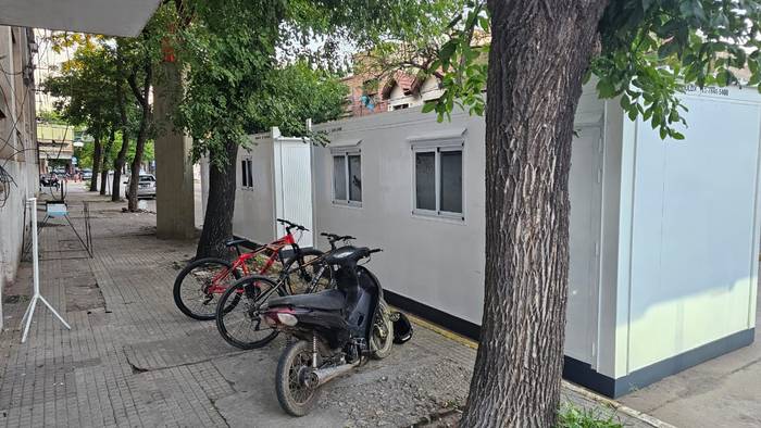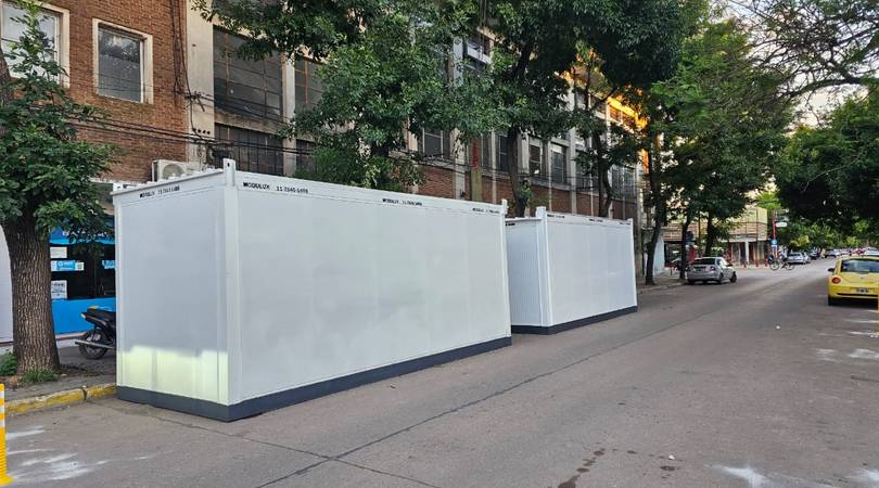 Tal como se aprecia en la foto, ya se encuentran instalados dos containers que funcionarán como oficinas provisorias en calle San Juan.