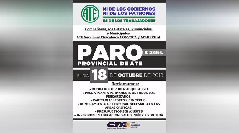 La Asociación de Trabajadores del Estado y los docentes bonaerenses paran a partir de mañana.