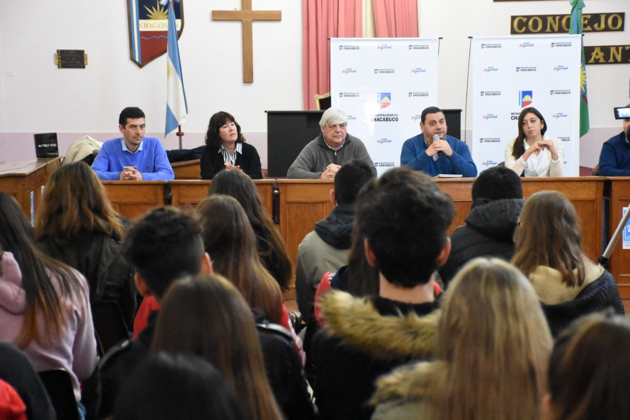 En la jornada de hoy participaron más de 150 jóvenes de las Escuelas Secundarias. Estuvieron presentes la jefa distrital de Política Socio Educativa, Cecilia Balbiano; la directora de Educación, Gabriela Rizzotti; el coordinador de Derechos Humanos, Maximiliano Lancieri; el presidente del Honorable Concejo Deliberante (HCD), Jorge Muela; y los concejales del bloque Cambiemos, Jorgelina Soñez; y Marcos Scally.