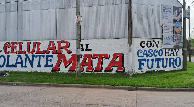 Además, se reforzó el mensaje con pintadas en la vía pública que llevan consignas como “Usar el celular al volante MATA” y “Con casco hay FUTURO”, buscando captar la atención de los automovilistas y motociclistas.