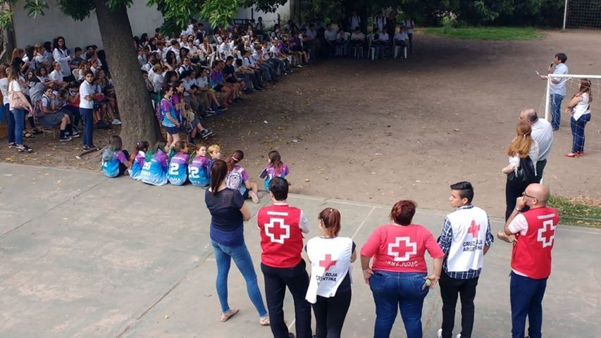 A las 12:30 comenzaron a llegar los estudiantes, quienes, luego de unas palabras de Bienvenida y la presentación de cada una de las Instituciones intervinientes (Secretaría de Salud, Cruz Roja Argentina Filial Chacabuco, Bomberos Voluntarios-Proyecto PIGRECH, Subsecretaría de Tránsito y Educación Vial, Colegio Madrigal e Inspección de Educación Primaria y Secundaria de Nivel Privado), empezaron un recorrido por diferentes talleres que apuntaron a promover cuidados en diferentes niveles de la Salud Integral, con la colación de una merienda saludable.