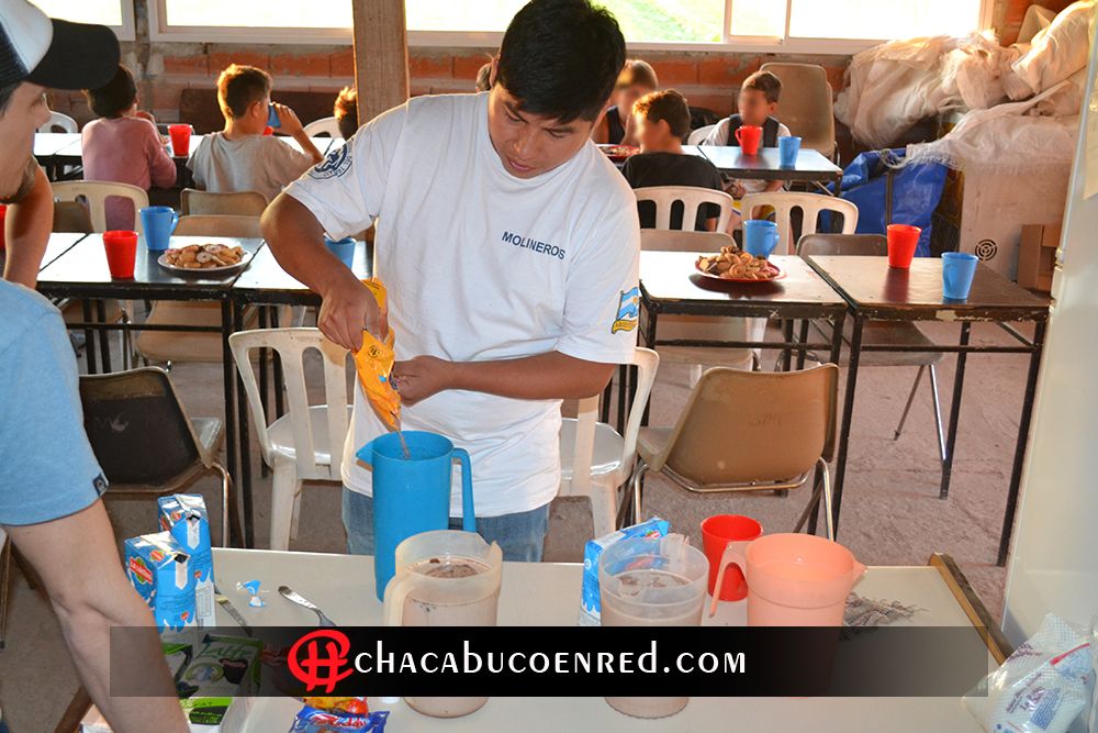 K.I: La mayoría de las cosas son por donaciones de la gente que se acerca, de los mismos jugadores, de la comisión y algunos vecinos que se acercan a colaborar. Hoy en día los que estamos trabajando somos Mariana Bustos que es tesorera del Club, Valeria Cataldo, vecina del Club, que se sumó y que va todos los viernes a darnos una mano, Cecilia Figueroa, hermana del presidente del Club, y estoy yo. Tenemos el aporte de la panadería “El buen gusto” que desde el primer día nos ayudan con facturas, de Red Solidaria Chacabuco y de Fernando Papadá, que todos los jueves se acerca con tortas. Después, la gente que nos conoce, siempre se acerca y nos traen leche, galletitas y ese tipo de cosas.