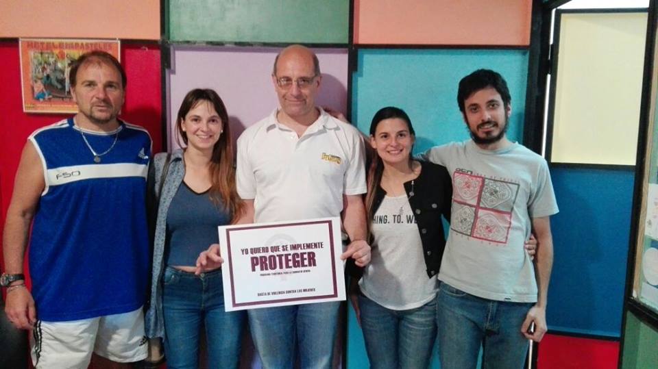 Quienes ya dieron su apoyo fueron la Iglesia Ministerio Presencia de Dios, que lidera Maximiliano Márquez; el grupo de teatro que lleva adelante la obra “Camisas que da calambres”, creada y dirigida por Mercedes Lacentra; la Unión Obrera de Molineros Argentinos de Chacabuco, que tiene como Secretario General a Sergio Palmieri, el Programa Radial de Mates y Noticias, que lleva adelante Gustavo Porfiri; el programa Radial de Jungla que conduce Claudio Núñez. El día domingo antes del comienzo de la final del campeonato de fútbol, los equipos 9 de Julio y Argentino se fotografiaron sosteniendo la bandera de Proteger en la cancha donde se disputó el superclásico. Otra adhesión de importancia fue la del Diputado Provincial Mauricio Barrientos, quien además señaló que presentó un proyecto para que dicho programa sea declarado de Interés Legislativo. A esto se suma gran cantidad de vecinos que mostraron su adhesión a través de las redes sociales. PROTEGER, es un programa que establece una serie de medidas para llevarse a cabo desde el Estado Municipal para asistir a la mujeres que sufren violencia de género. Julieta Garello e Ivana Grobets, que impulsan dicha campaña, manifestaron que “venimos trabajando fuertemente para llegar a todos los sectores de nuestra ciudad, para dar a conocer esta propuesta, para llevarnos distintas miradas sobre este tema, y para hacer fuerza entre todos, desde la diversidad y la amplitud, para que sea escuchada por quienes gobiernan y tomen la decisión de implementarla”. Pare finalizar, sostuvieron que, “nuestro proyecto no solo es factible de llevarse a cabo, sino que también es una profunda y sentida necesidad, la violencia de género es una realidad terrible que viven cientos de mujeres de nuestra ciudad y ante esta situación es urgente diseñar políticas de género efectivas para comenzar un camino de subsanación y reparación”.