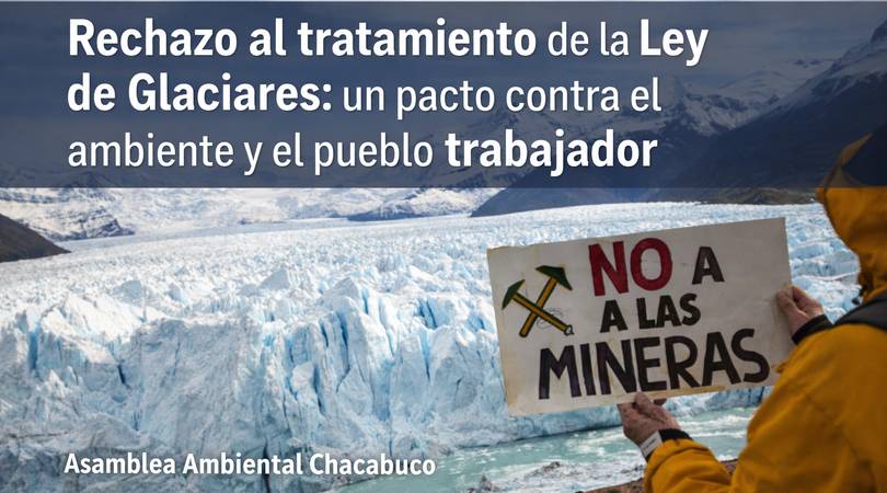 Desde la Asamblea Ambiental Chacabuco expresamos nuestro rechazo al tratamiento y modificación de la Ley de Glaciares que se impulsa en el Congreso Nacional, al servicio de las grandes empresas mineras y en contra de la defensa de nuestros bienes comunes.