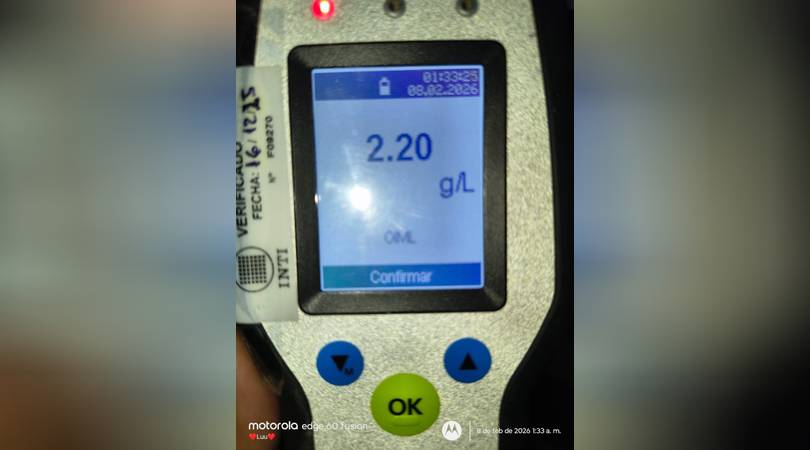 También fue demorada una camioneta, ya que su conductor arrojó resultado positivo en el test de alcoholemia, con 1,28 g/l.