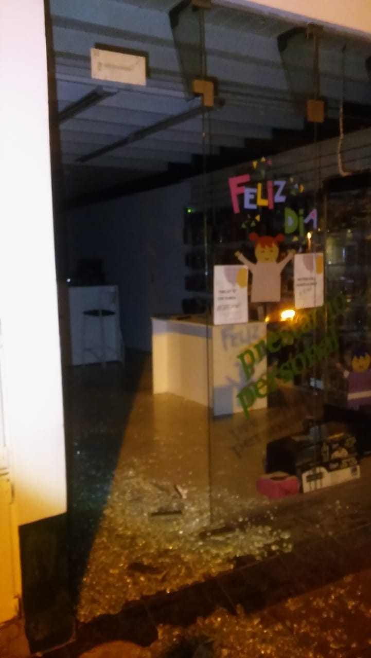 Aproximadamente a las 4 de la mañana, delincuentes rompieron la puerta principal de un local de aparatos tecnológicos situado en calle Zapiola entre Alsina y Primera Junta y se llevaron teléfonos celulares y un plasma.