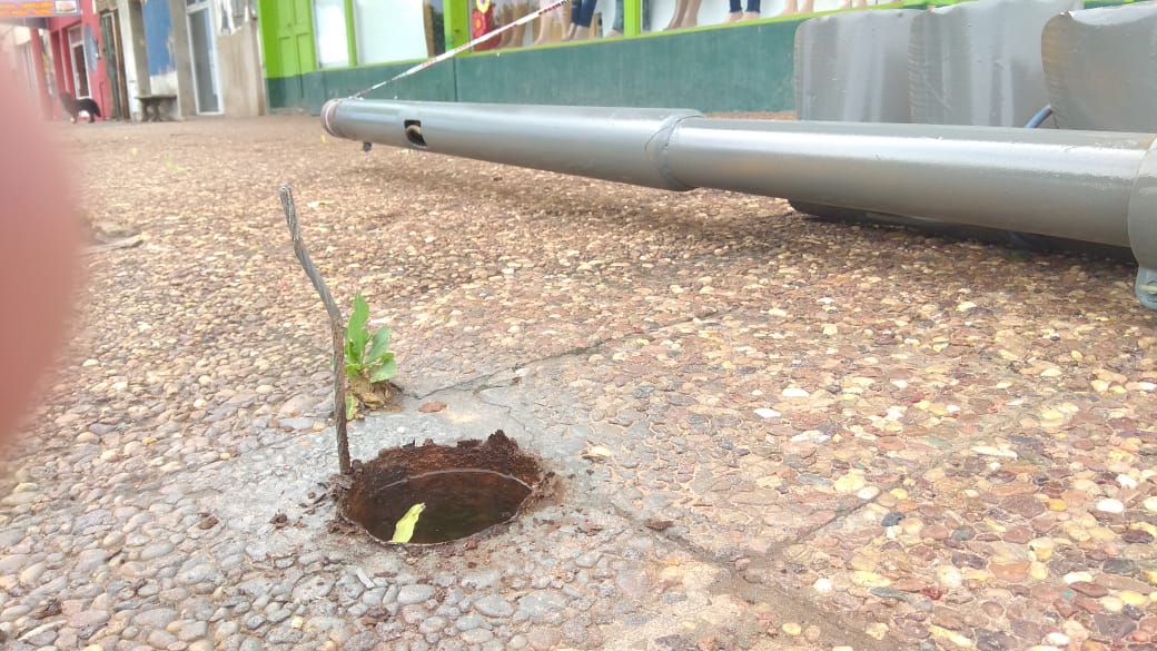 Un semáforo que estaba ubicado en avenida Urquiza y Saavedra se despegó de su base y cayó en la vereda.