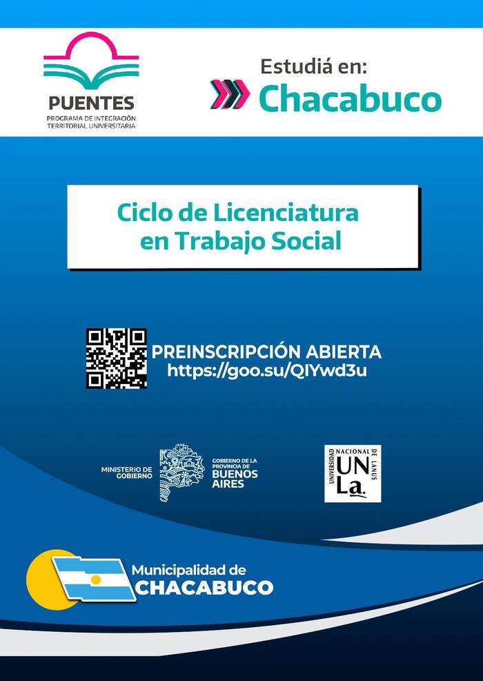 El Intendente Municipal, Darío Golía, encabezó este mediodía una charla informativa para presentar el ciclo de Licenciatura en Trabajo Social, que se dictará de manera presencial en el Centro Universitario Chacabuco, a través del Programa PUENTES de la provincia de Buenos Aires con la Universidad Nacional de Lanús (UNLa).