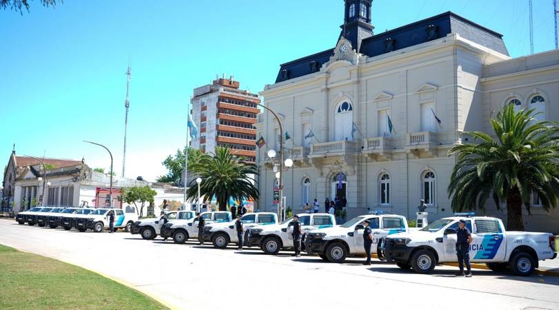 Este martes cerca del mediodía, el intendente municipal, Dr. Víctor Aiola, brindó una conferencia de prensa junto al ministro de Seguridad de la Provincia, Sergio Berni, por la entrega de 12 nuevos patrulleros tras las gestiones realizadas por el Gobierno de Chacabuco. Serán destinados a la Comisaría local, Comisaría de la Mujer y localidades del Partido.