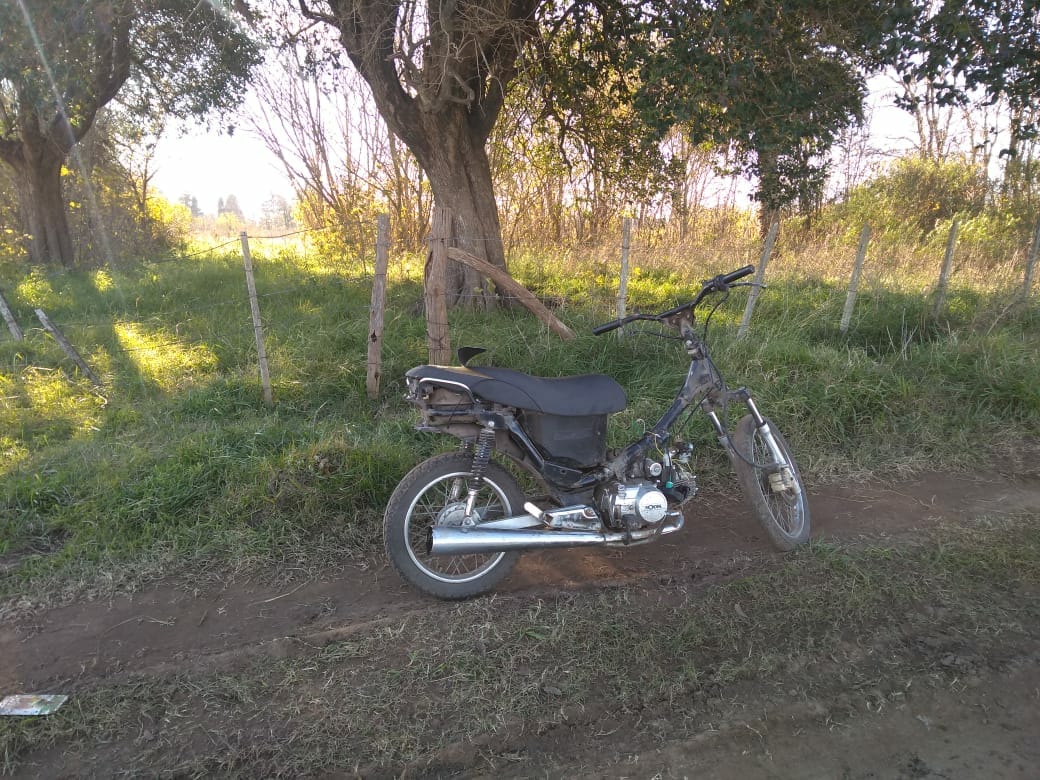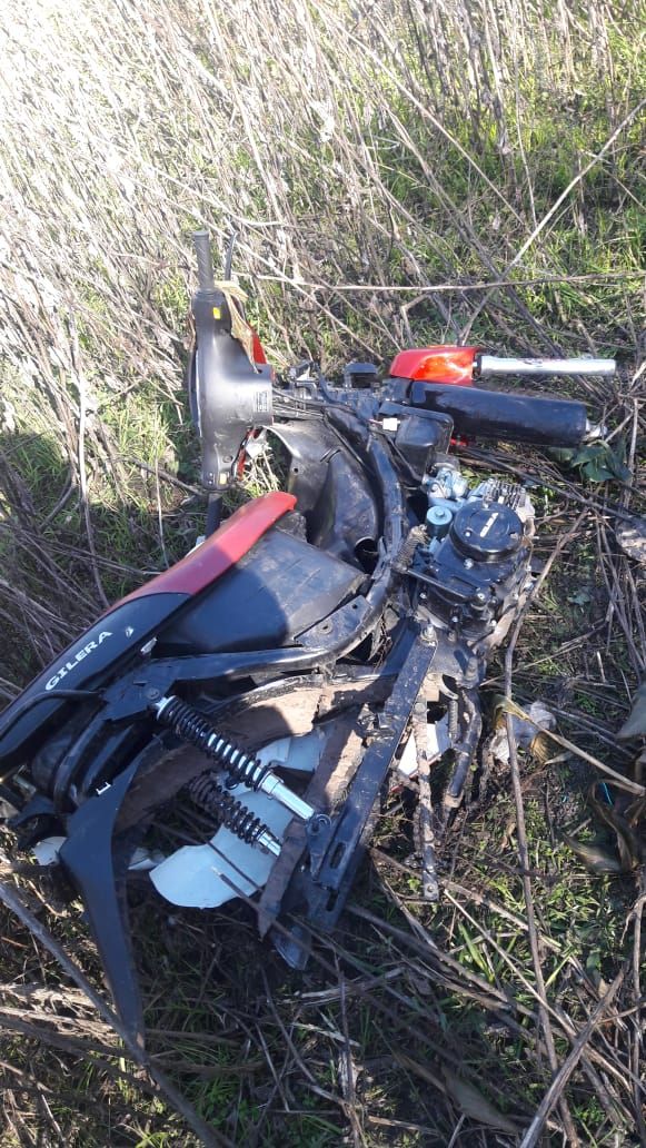 Más tarde, a las 13 horas, en calle Linch continuación se secuestró una Gilera Smash roja que estaba abandonada en un descampado, había sido robada del domicilio de Alessandro Ricardo Bo.