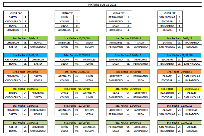 La Liga Deportiva de Chacabuco dio a conocer el Fixture del torneo de selecciones sub 15. El equipo de Chacabuco comparte la ZONA A con Salto, Rojas y Chivilcoy.
