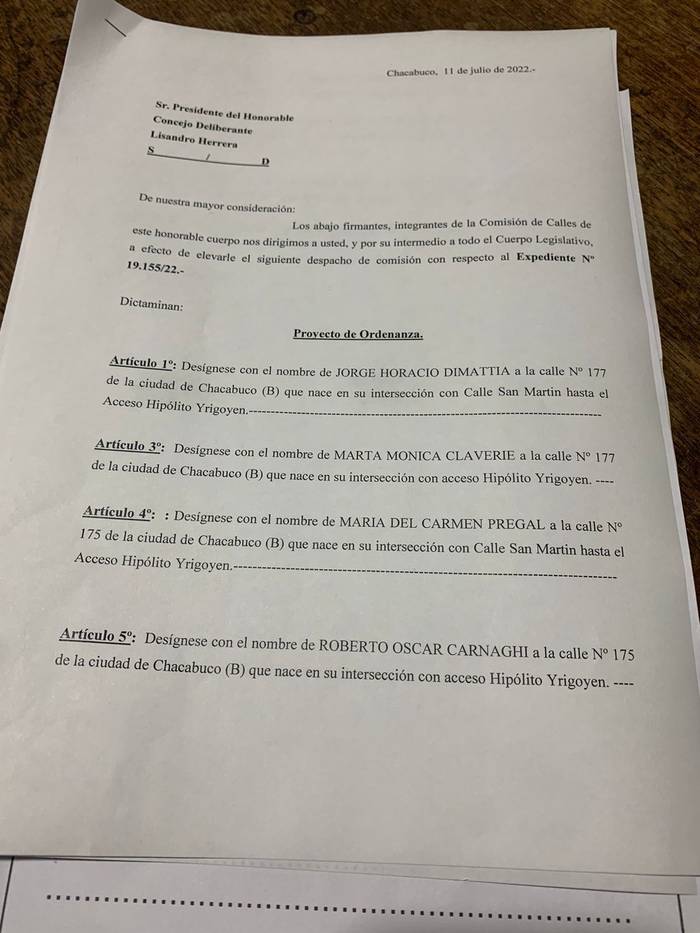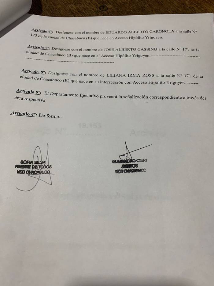 Hoy el Concejo Deliberante aprobó los siguientes nombres de calles para Chacabuco