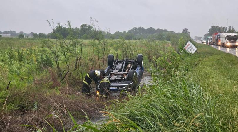 Esta mañana fueron convocados los bomberos voluntarios a través de la sirena por un vuelco de una camioneta en el km 209 de la Ruta 7.