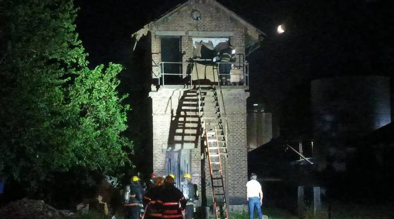 Esta noche, la sirena de Bomberos alertó por el incendio de una casilla del tren en Pellegrini y Matheu.