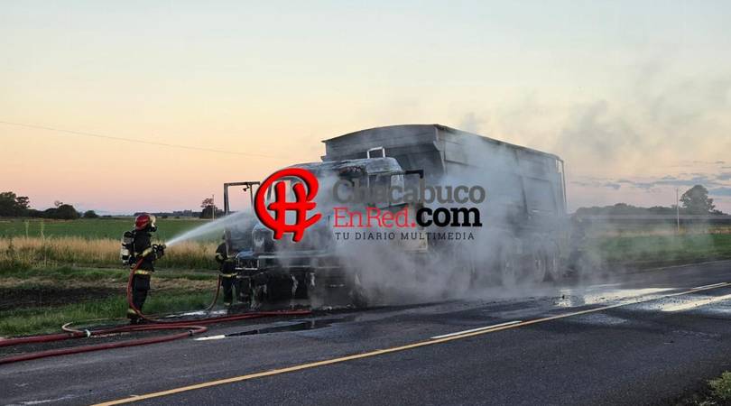 La sirena de bomberos obedece a un llamado por el incendio de un camión Mercedes Benz, en Ruta 30 camino a Chivilcoy.