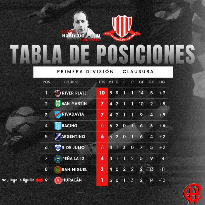 Este miércoles se disputó un nuevo partido de la fase regular de la etapa Clausura del campeonato local que organiza la Liga Deportiva de Chacabuco. En el estadio Aldo Carena, igualaron 9 de Julio y River 3 a 3, con goles de Zanotti, Minchilli y Cirigliano para el Lobo, y Bisso y Gómez -en dos ocasiones- para el Millonario.