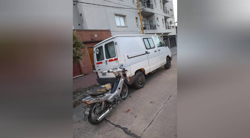 En calle Jujuy entre Almirante Brown y 25 de Mayo se produjo un accidente cuando una mujer identificada como María del Valle Ardiles colisionó con su moto 110cc a la parte trasera de una Renault Traffic propiedad de Gustavo Forti.