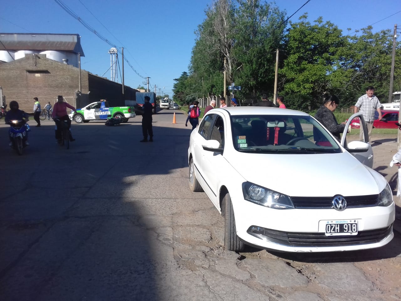 Hace minutos en la esquina de Solís y Villegas, una pareja con su bebe chocaron con un automóvil y cayeron de la moto en la que circulaban.
