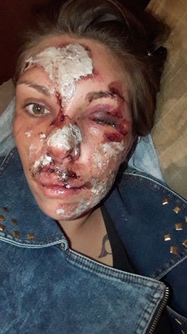 Qhdp todavia mienten como le quedo el rostro a la señorita q verguenza decir q se cayo sola .ojala se recupere pronto..?