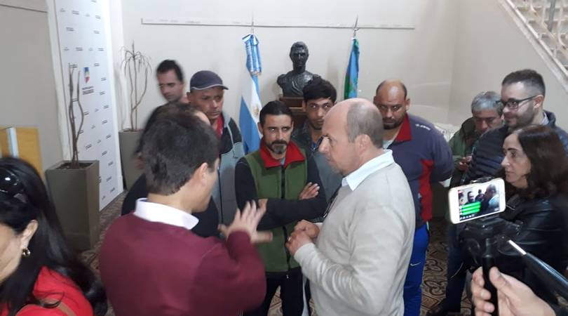 Apenas pasados unos 15 minutos del encuentro los Concejales opositores junto a los barrenderos bajaron hacia el despacho del Intendente Víctor Aiola en donde su secretaria les comunico que no podía recibirlos él pero si el Secretario de Gobierno Ignacio Orsini.