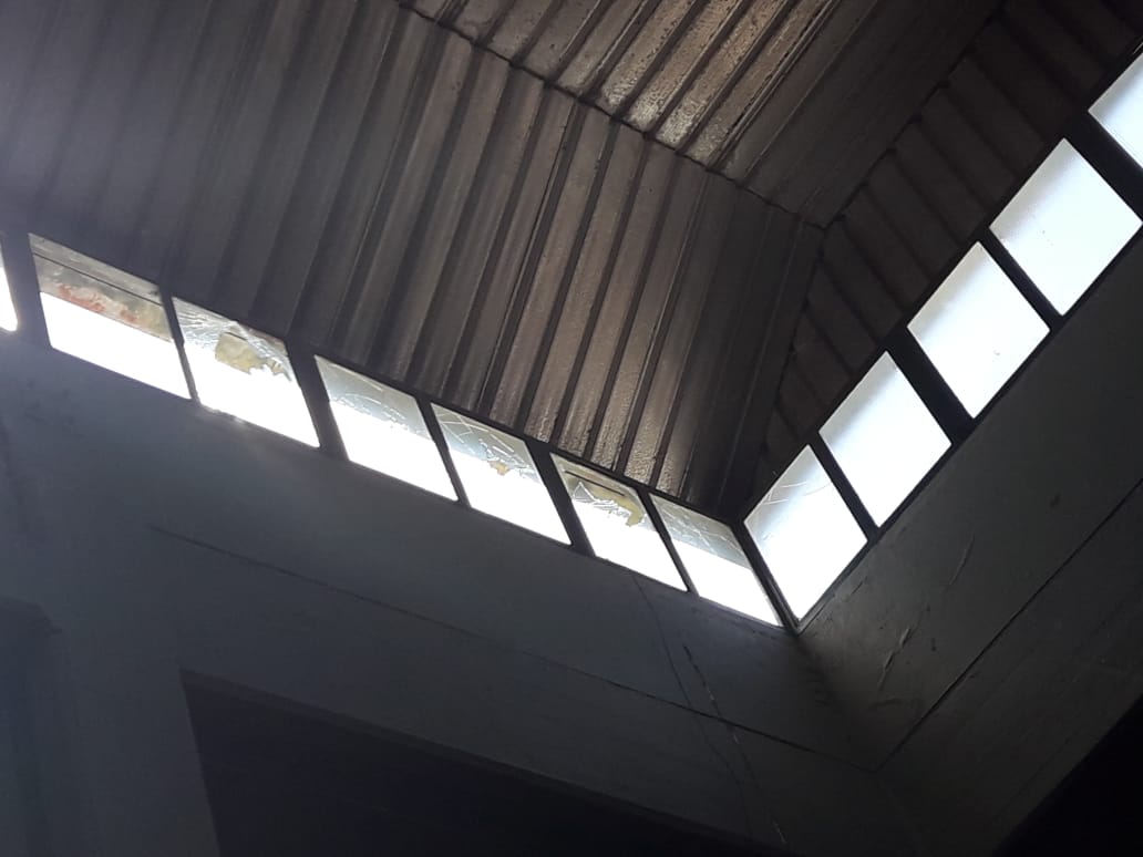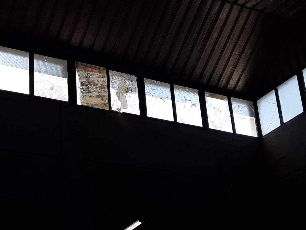 Rompieron vidrios y arrojaron baldosas en el hall Central del edificio.