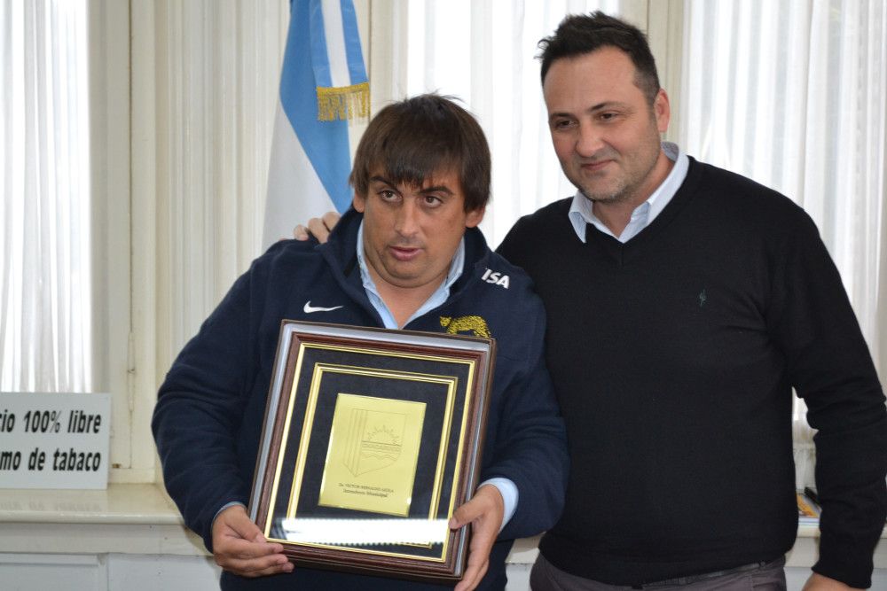 Esta mañana, el intendente de nuestra localidad, Victor Aiola, recibió a Martín Perego, capitán de los Pumpas XV, en motivo de la visita que el seleccionado argentino de Rugby Inclusivo esta haciendo en nuestra ciudad. También estuvieron en el encuentro, Rodolfo Serritella, Subsecretario de Acción Social, Jorge Gimenez, Oficial de Desarrollo de la Unión de Rugby del Oeste de la Provincia de Buenos Aires (UROBA), la Subsecretaria de deportes Milagros Marveggio y Martin Abaca.