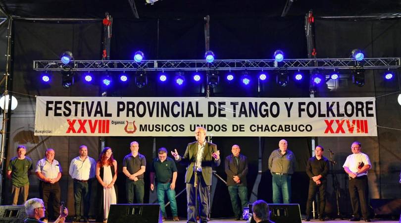 El Intendente Municipal, Darío Golía, encabezó esta noche la apertura oficial del XXVIII Festival Provincial de Tango y Folklore, acompañado en el escenario por la comisión directiva de Músicos Unidos, el Secretario de Gobierno, Lic. Javier Estévez, el Secretario de Seguridad, Dr. Gustavo Masci, y la Subsecretaria de Cultura, Julieta Pederzoli.