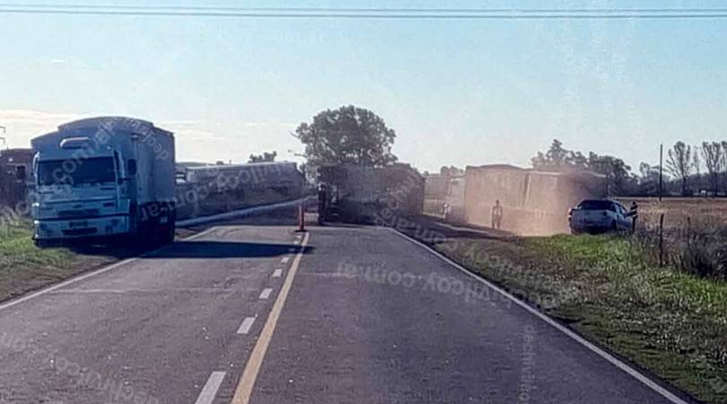 El rodado, que transportaba alimento para pollos, quedó atravesado sobre la calzada, ocupando ambos carriles y generando importantes complicaciones en el tránsito.