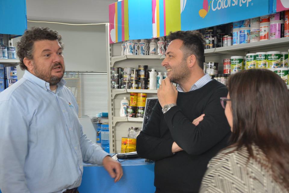 Carlos en su taller, y Guillermo en la pinturería “Colorshop”, fueron los lugares visitados por el jefe comunal esta mañana, donde la lluvia no fue un impedimento para continuar en contacto con los vecinos.